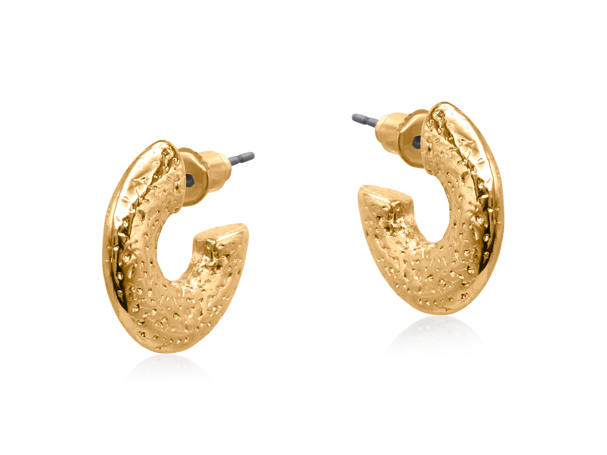 These handcrafted textured hoop earrings feature a bold, sculptural silhouette with a hammered finish that catches the light beautifully. Available in gold or silver, they’re a modern essential that adds depth and edge to any jewellery collection. At least 50% of the brass used in the jewellery we make is recycled from leftover/overhead materials. All posts are hypoallergenic and made from surgical steel.