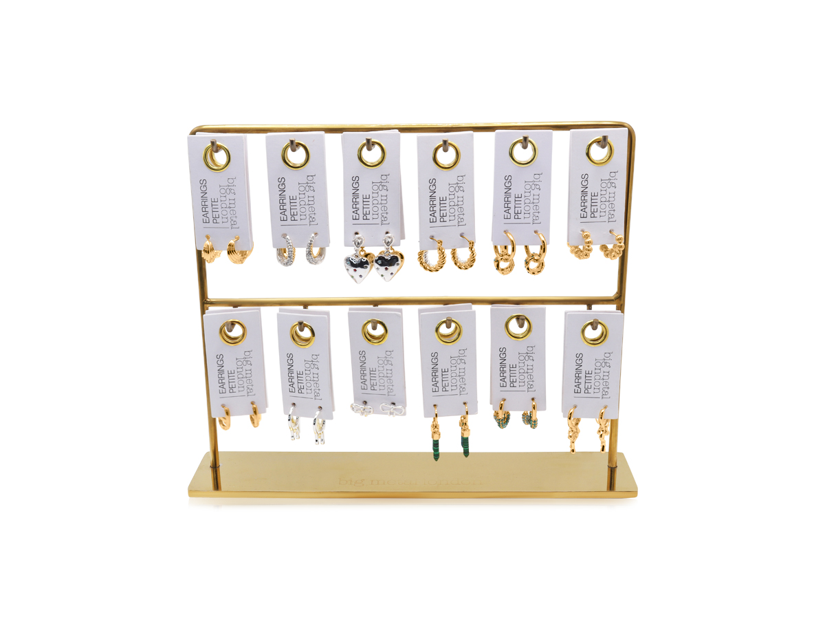 – 12 of our signature earring styles, each provided in both gold and silver finishes (3 of each per colour):