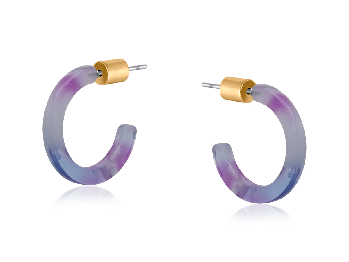 Soft and contemporary, the Delina Earrings feature a petite resin hoop in muted tones of grey/blue and taupe/green. Their subtle marbling and compact size make them an elegant everyday choice with a modern edge.