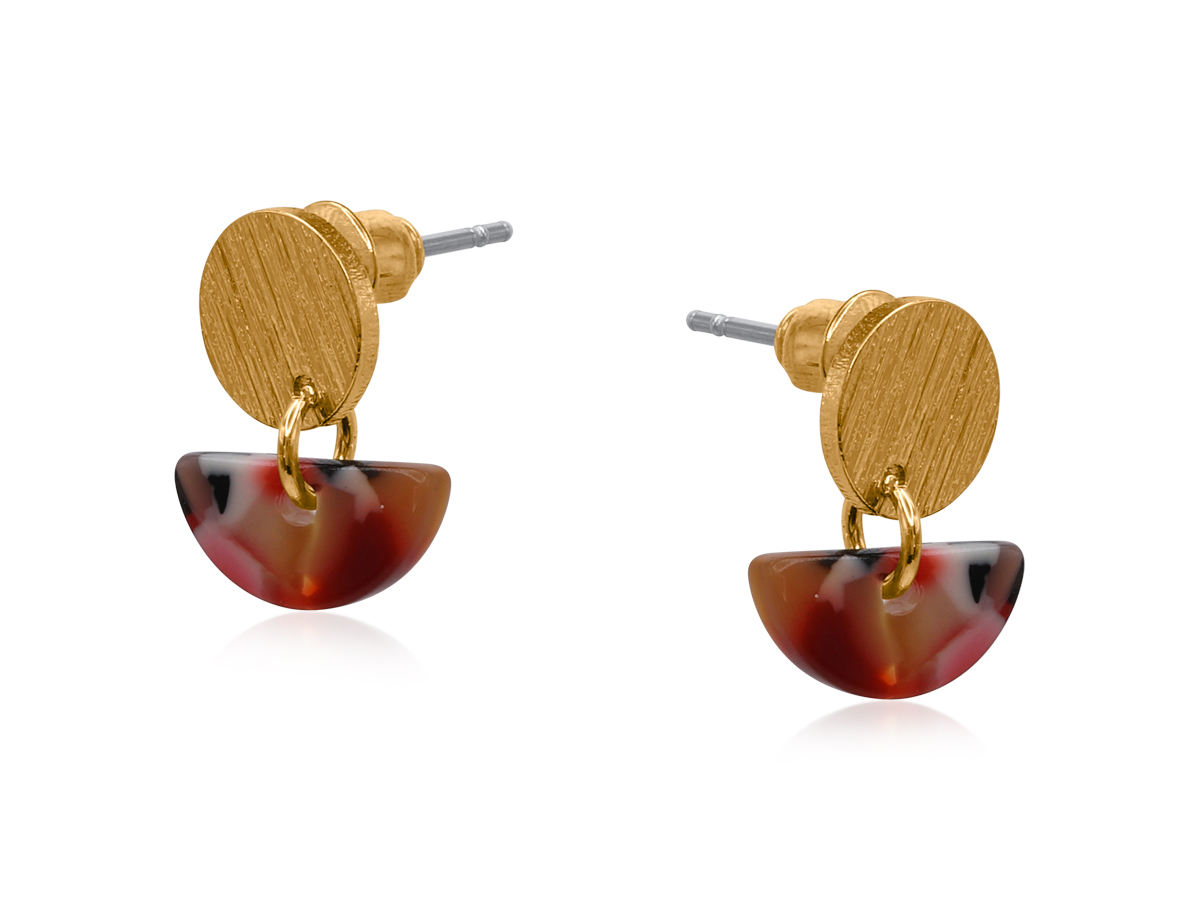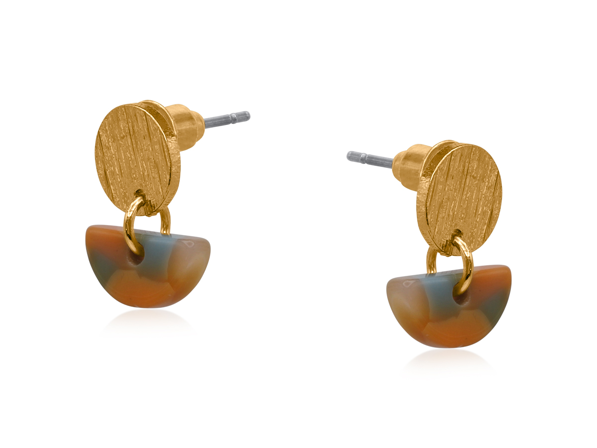 Colourful and fun, the Fabia Earrings bring a playful twist to everyday style. Available in bold orange/red or vibrant blue/orange, these petite resin studs are designed to add a pop of personality to any outfit.