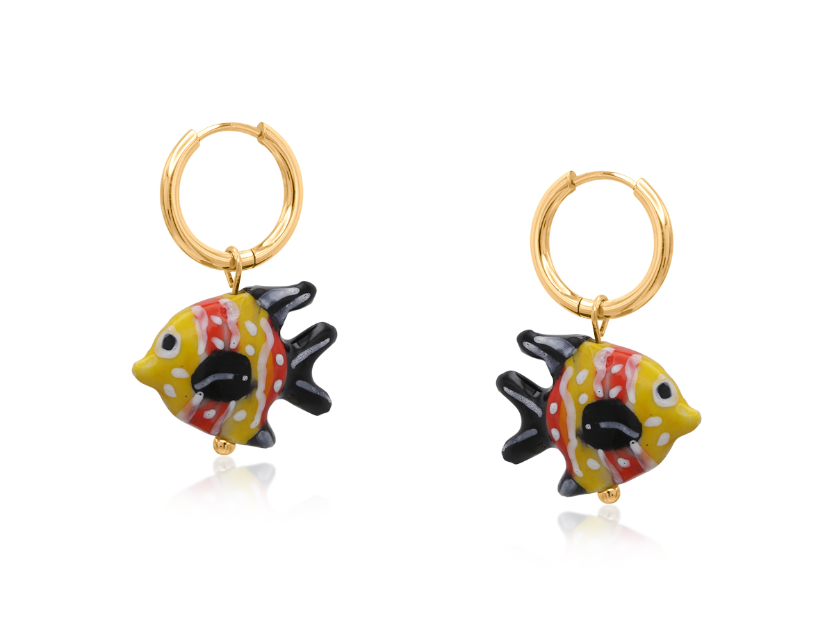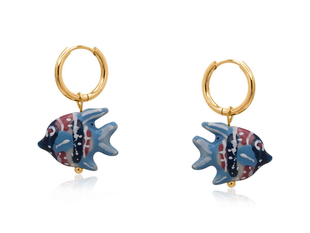Charming and coastal-inspired, the Fish Ceramic Charm Petite Earrings feature a delicately shaped ceramic fish charm suspended from a refined petite hoop. Their playful silhouette adds a subtle maritime touch to everyday styling.