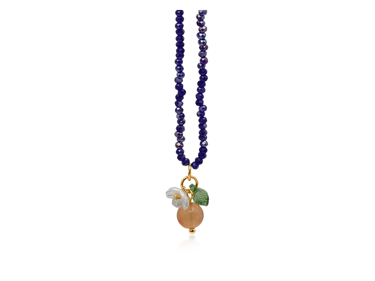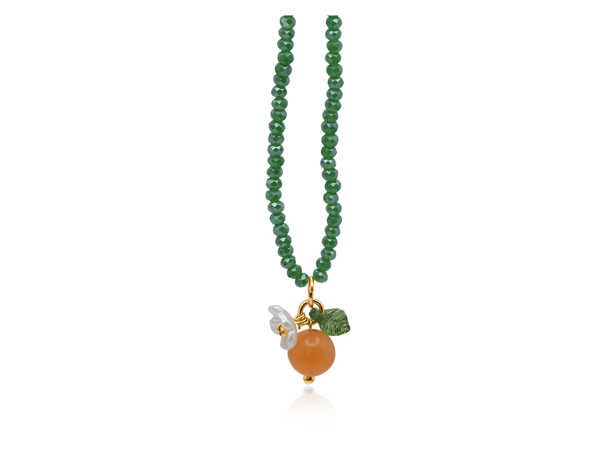 This beautiful handcrafted tangerine necklace features a bold orange charm, finished with a delicate blossom and translucent leaf detail. A vibrant, playful piece that adds warmth and colour to any look, from crisp autumn layers to breezy spring styles. Crafted with sustainability in mind, at least 50% of the brass we use in the jewellery is recycled from leftover/overhead materials.