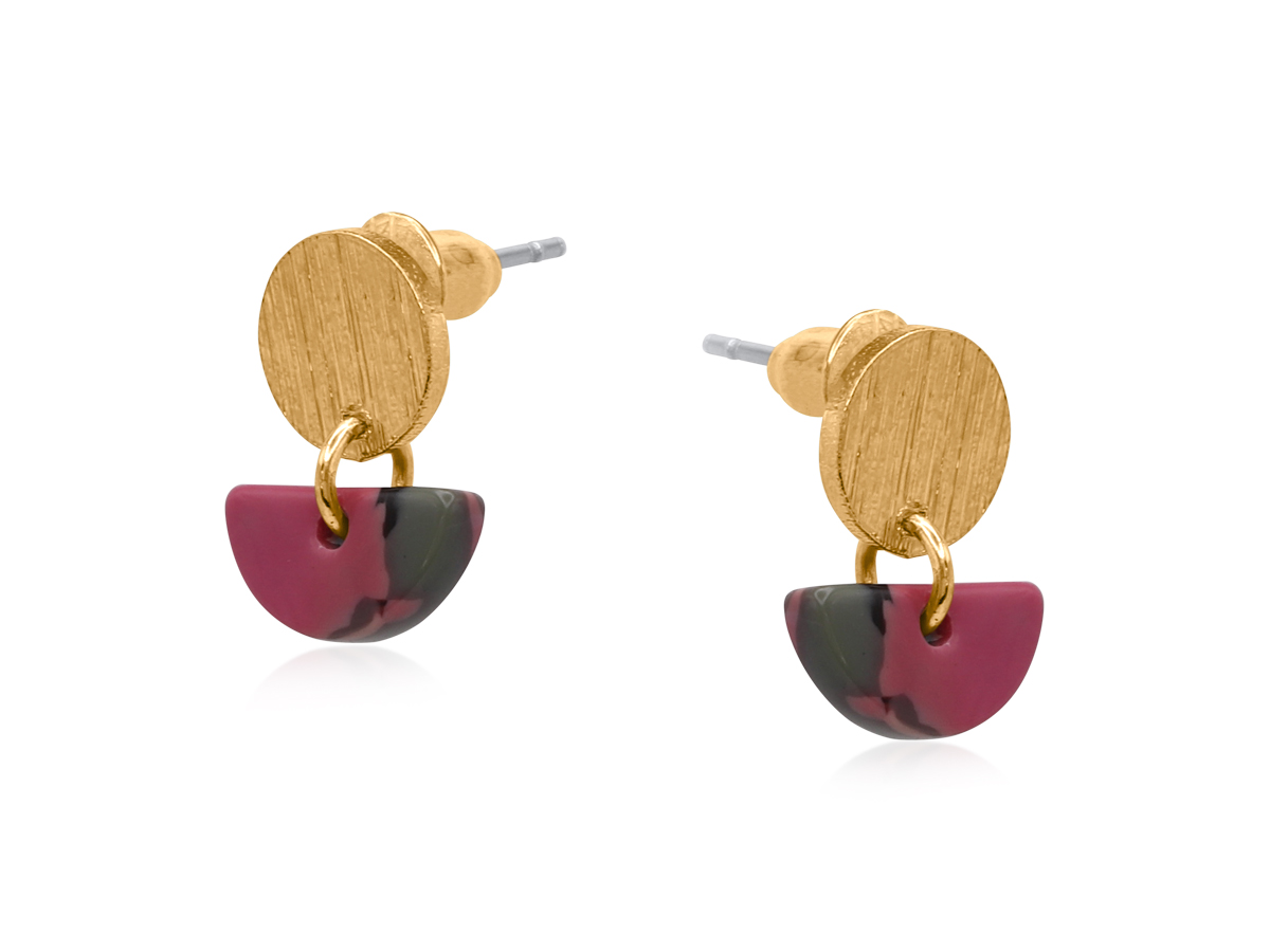 Soft tones and modern simplicity define the Padua Earrings. Available in pink/taupe and purple/green, these petite resin studs bring a subtle yet stylish accent to your everyday look.