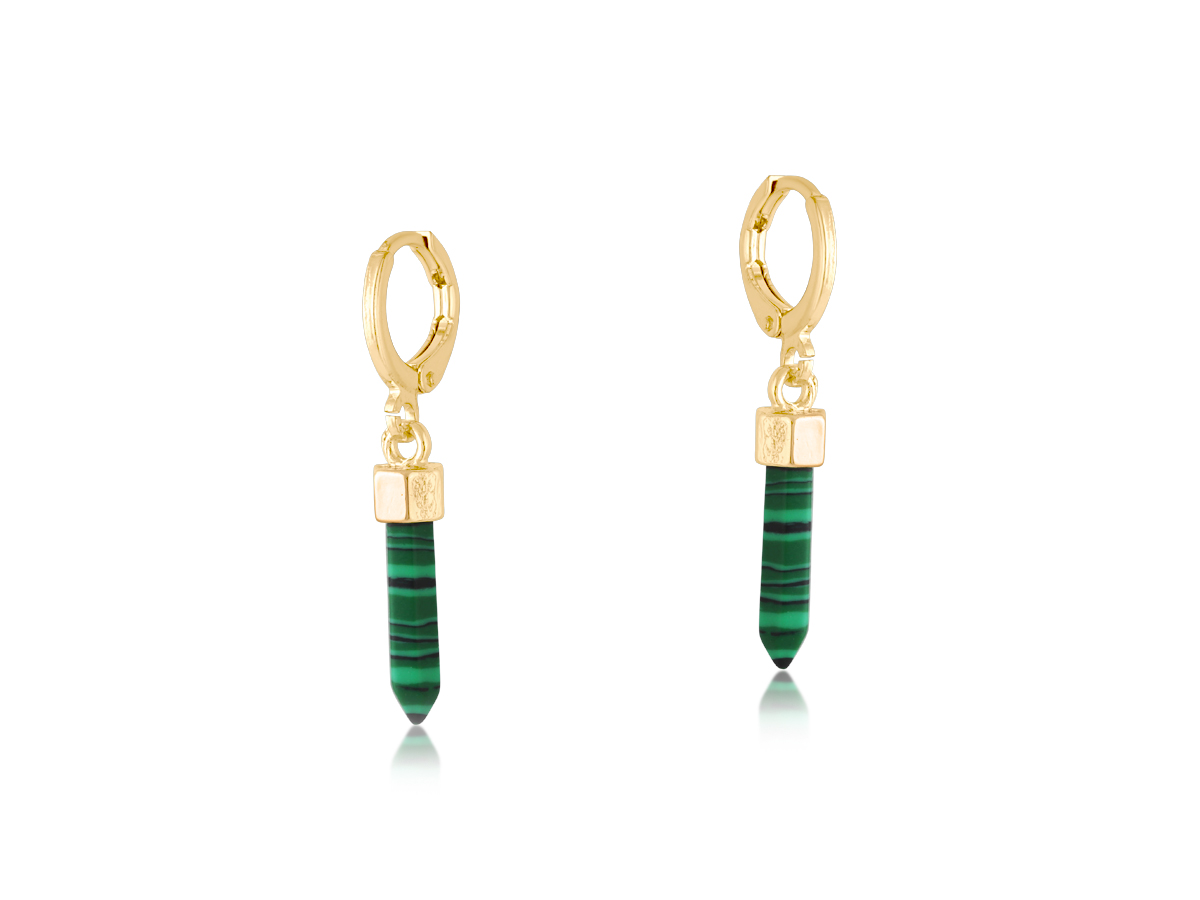 These handcrafted huggie earrings feature a small lapis charm, adding a subtle pop of vibrant color to your look. A perfect accessory to bring a unique, delicate touch to any outfit. At least 50% of the brass used in the jewellery we make is recycled from leftover/overhead brass. All posts are hypoallergenic made from surgical steel.