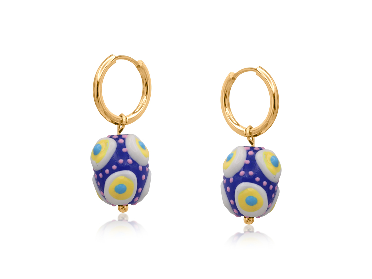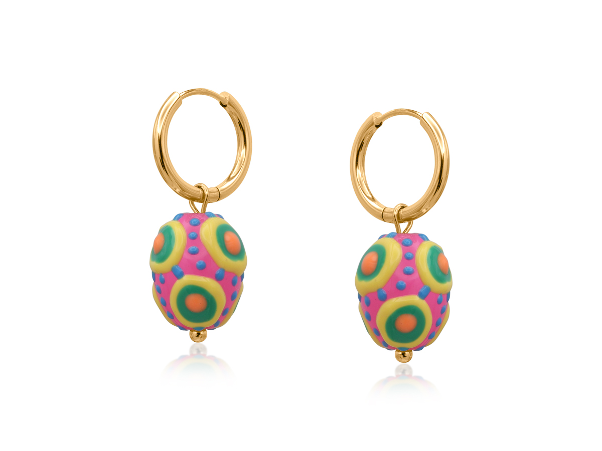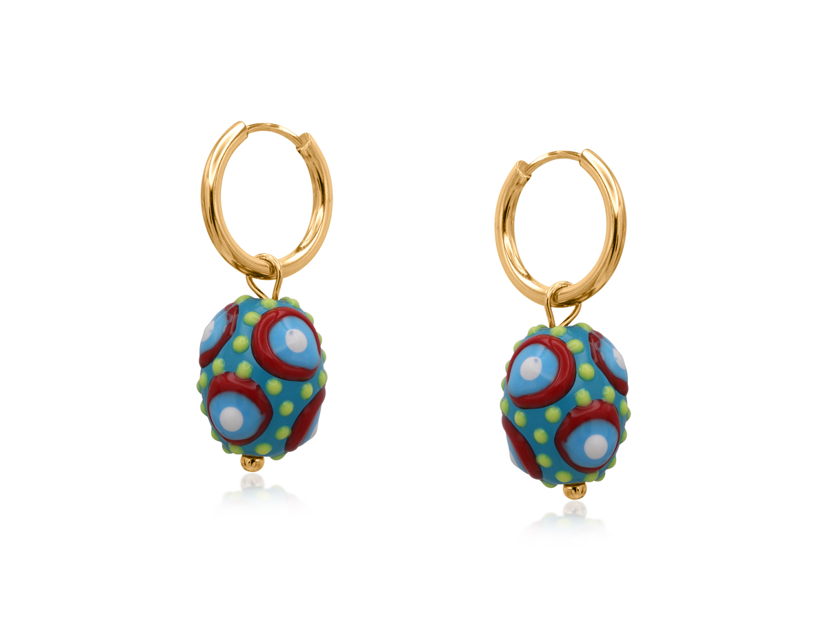 Simple yet impactful, the Santa Fe Ball Charm Earrings highlight a rounded charm with subtle texture and movement. Each colorful option offers a dynamic look. Their form brings a funky finish to the Southwestern-inspired styling.