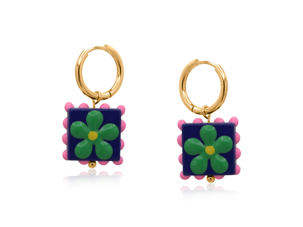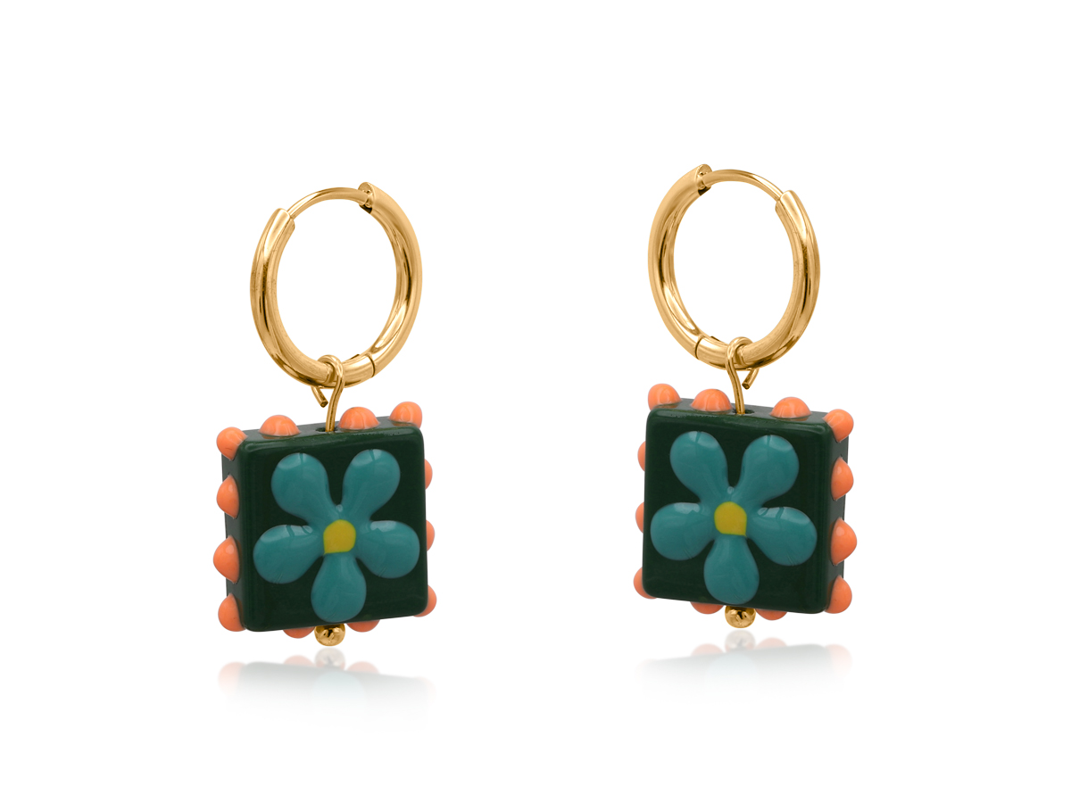 Santa Fe Square Floral Charm Earrings 4107
