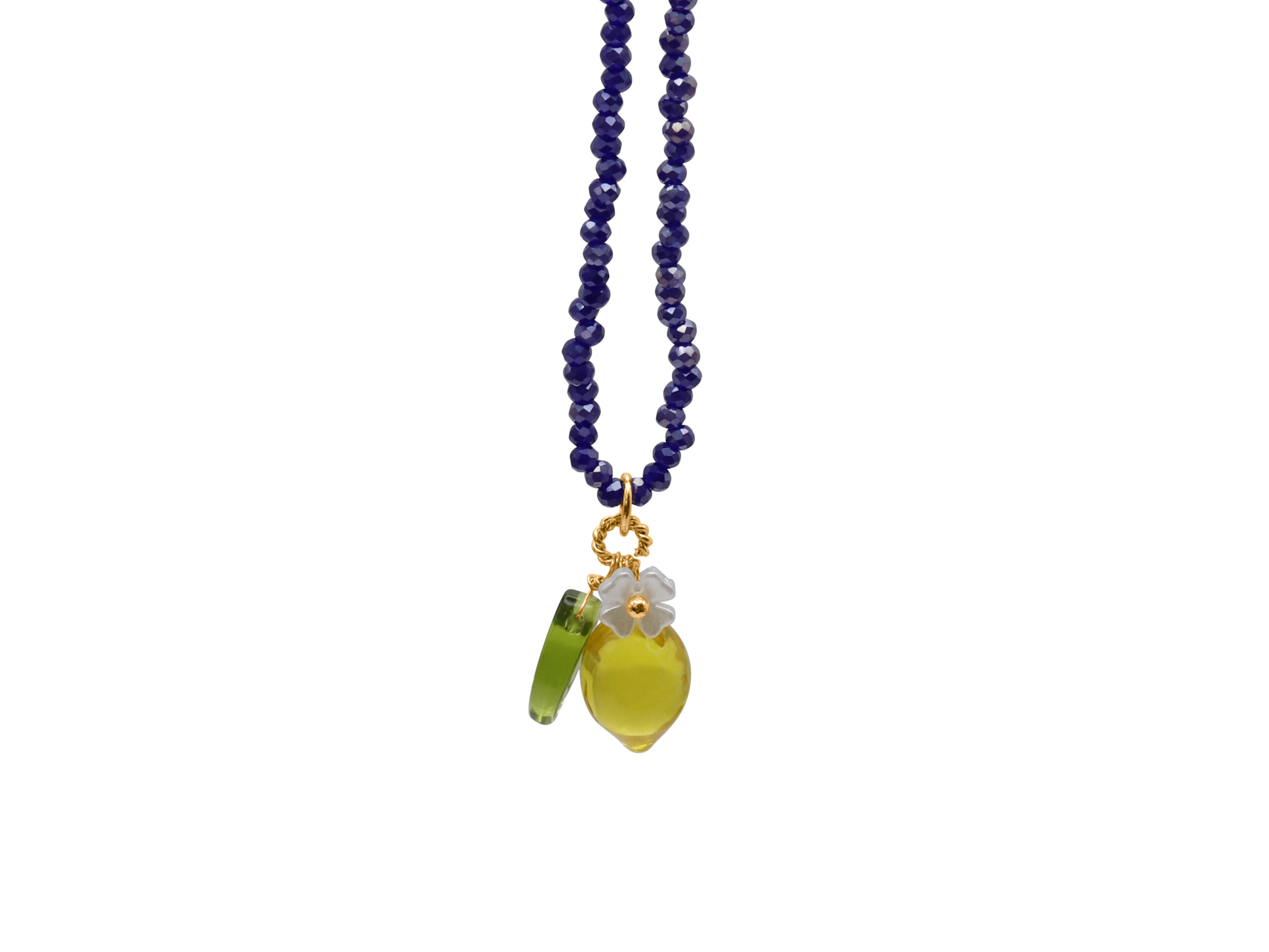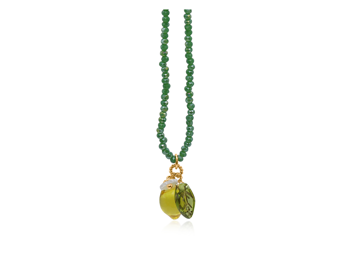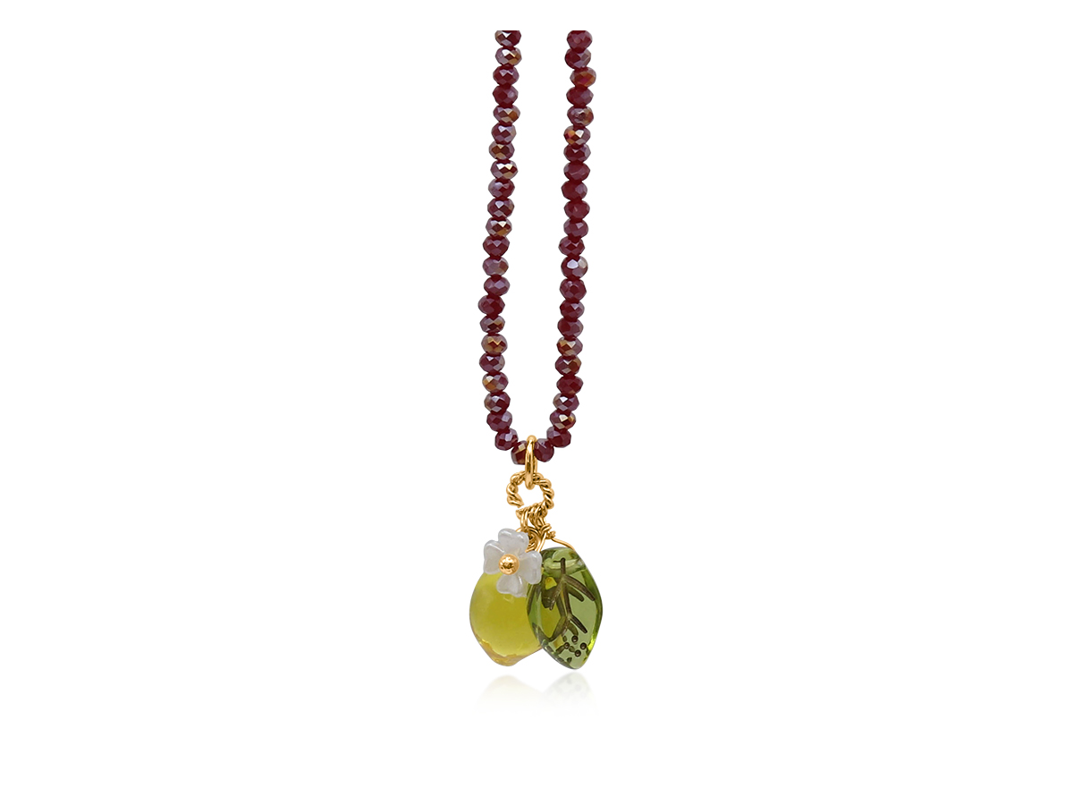This beautiful handcrafted lemon necklace features vibrant citrus tones, finished with a detailed blossom and translucent leaf charm. Offering a fresh blend of playful style and contemporary charm, it’s perfect for elevating both everyday and holiday looks. Crafted with sustainability in mind, at least 50% of the brass we use in the jewellery is recycled from leftover/overhead materials.