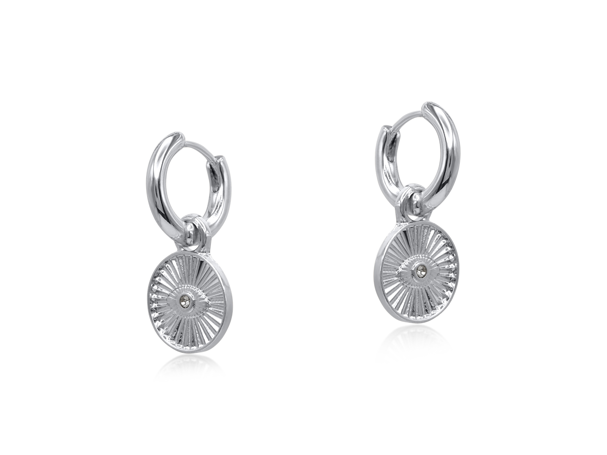 These handcrafted Siren’s Eye Huggies feature a textured gold or silver charm with a radiant eye design and a subtle crystal centre. A unique pair of huggie earrings that adds a symbolic, refined touch to any jewellery collection—ideal for everyday wear or layering with other pieces. At least 50% of the brass used in the jewellery we make is recycled from leftover/overhead brass. All posts are hypoallergenic and made from surgical steel.