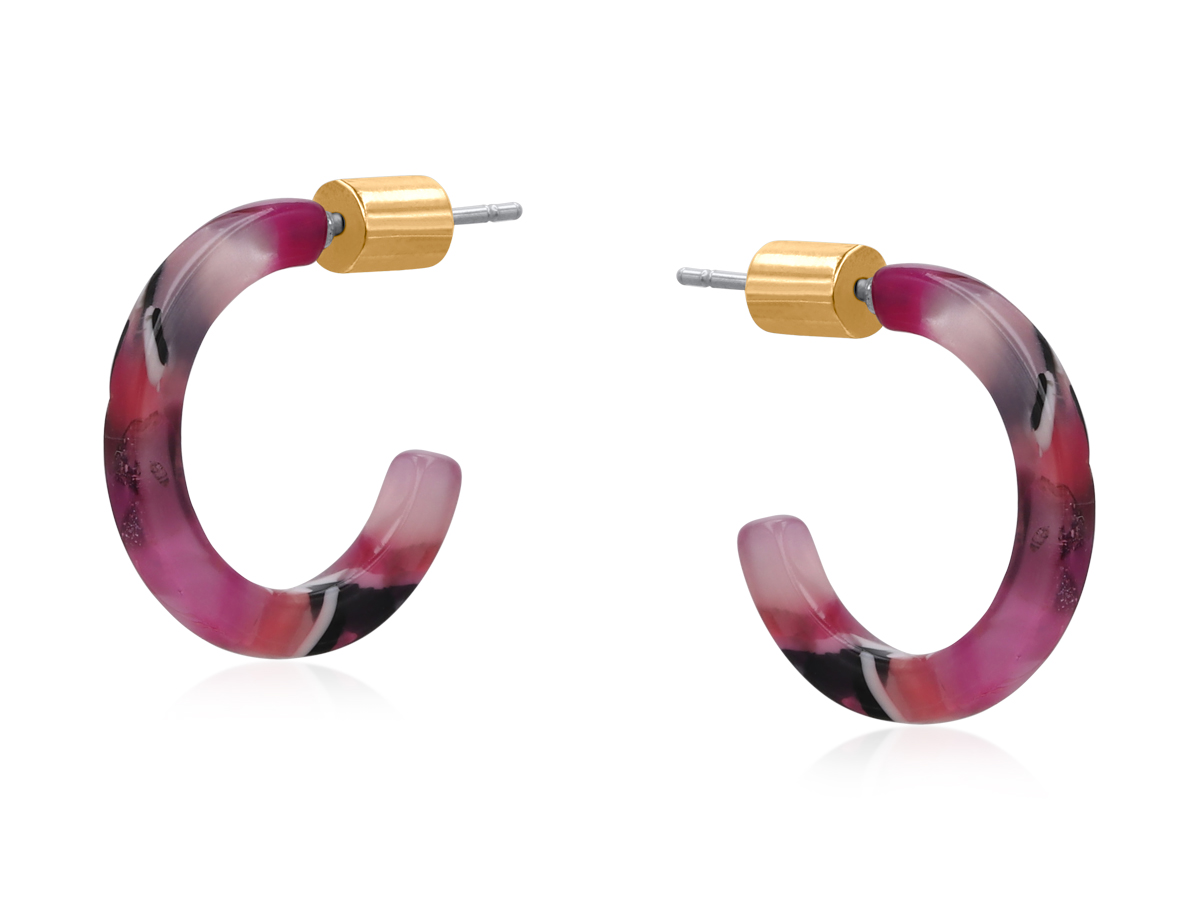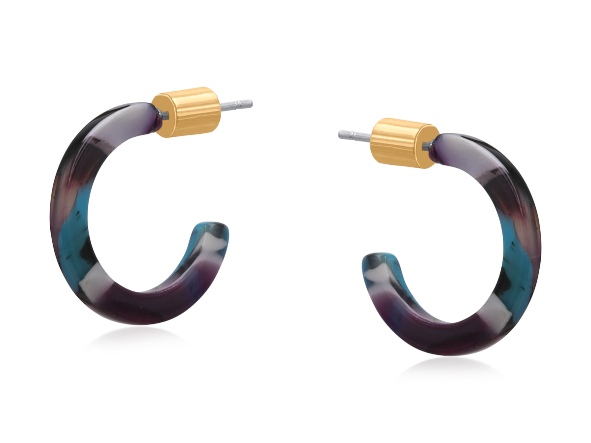 Bright and uplifting, the Talamanca Earrings feature a petite resin hoop in playful colourways of blue/lilac and pink. Their compact size makes them an easy everyday choice, while the cheerful tones add a touch of fun to any outfit.