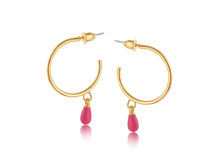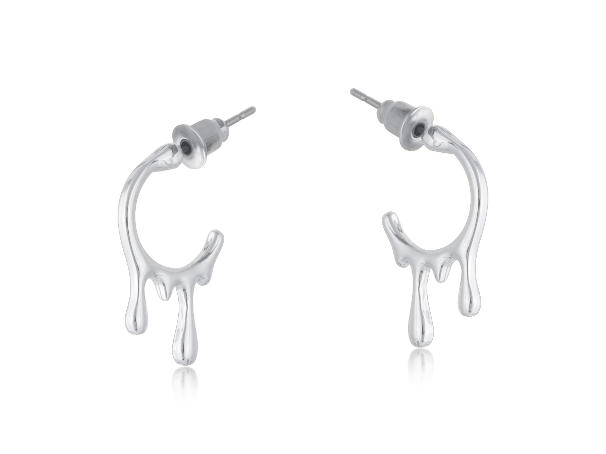 These fun hoop earrings feature a silver or gold plated paint drop effect. A playful addition to any look. At least 50% of the brass used in the jewellery we make is recycled from leftover/overhead brass. All posts are hypoallergenic made from surgical steel.